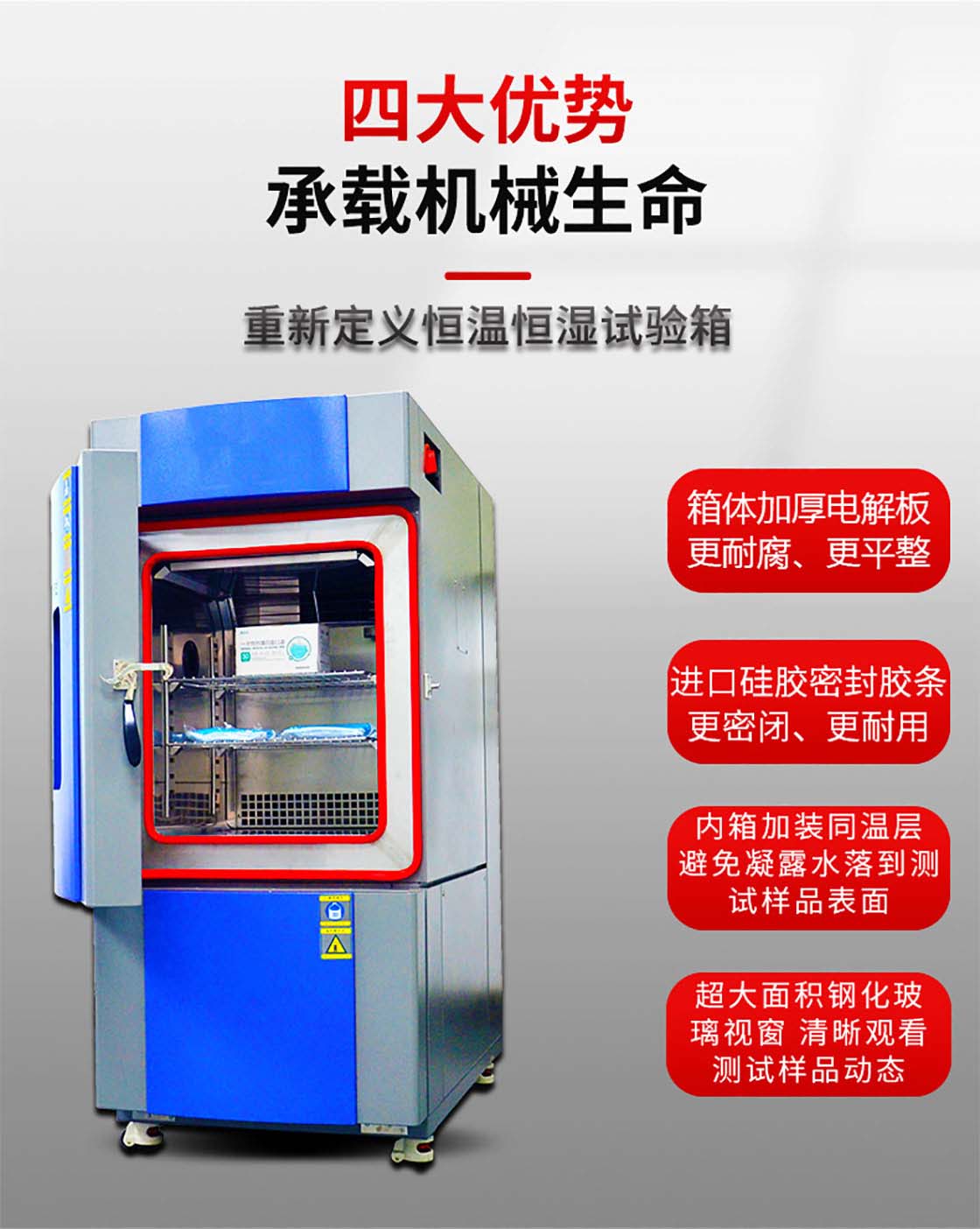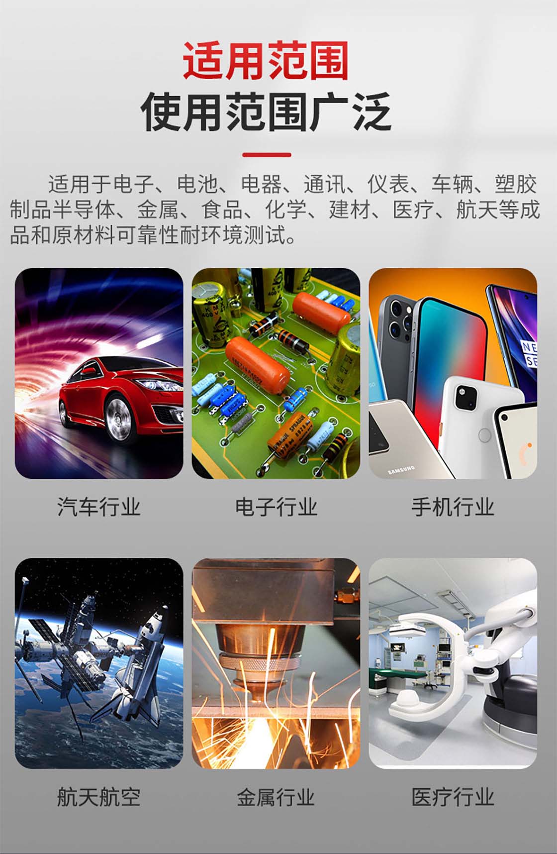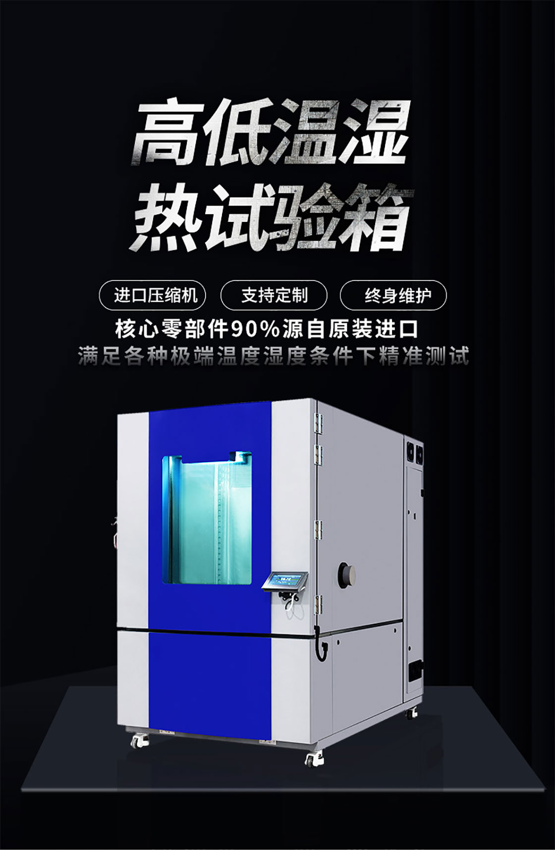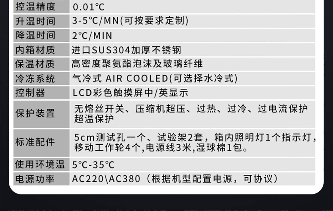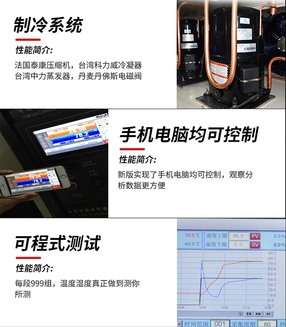 高低温试验箱:适用于工业产品高温、低温的可靠性试验。对电子电工、汽车摩托、航空航天、船舶兵器、高等院校、科研单位等相关产品的零部件及材料在高温、低温(交变)循环变化的情况下,检验其各项性能指标。