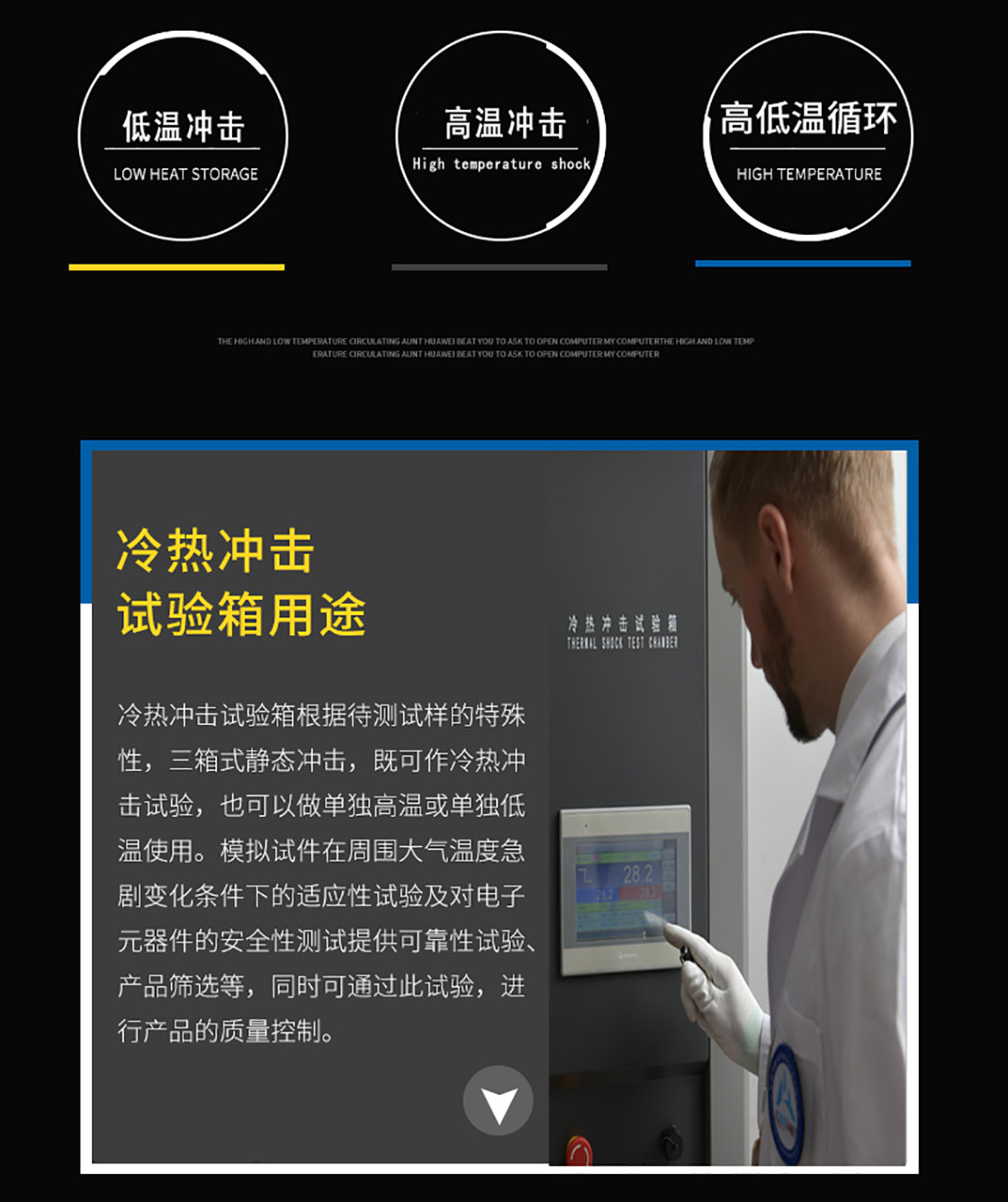 冷热冲击试验箱是金属、塑料、橡胶、电子等材料行业必备的测试设备,用于测试材料结构或复合材料,在瞬间下经极高温及极低温的连续环境下忍受的程度,得以在最短时间内检测试样因热胀冷缩所引起的化学变化或物理伤害。